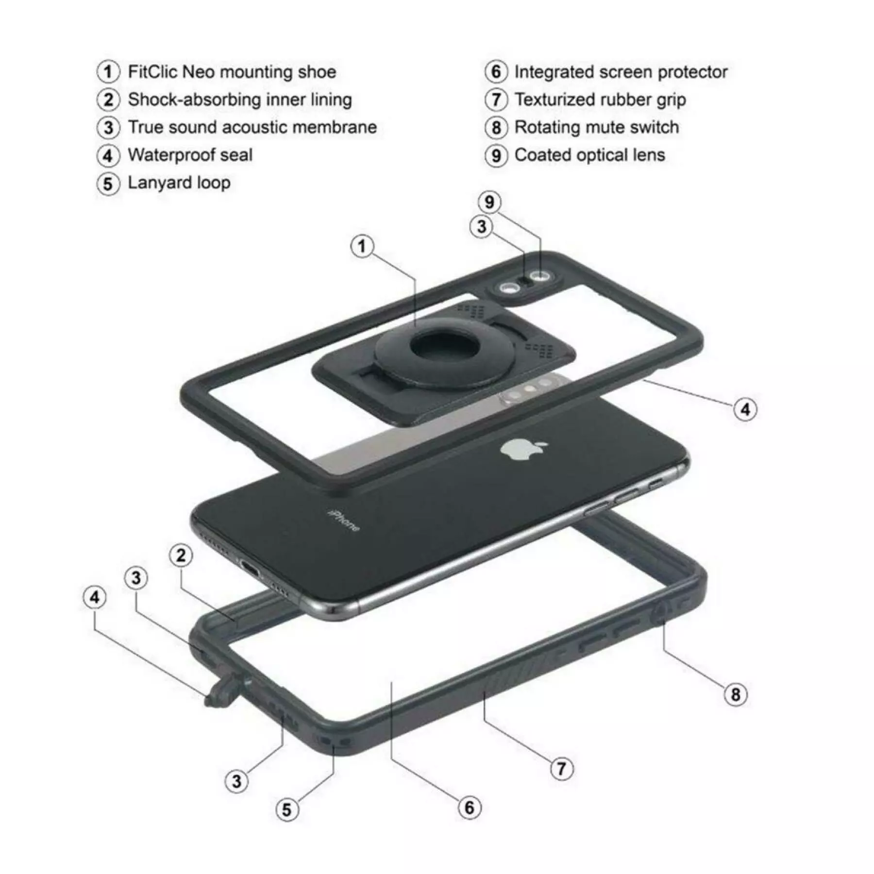 Coque étanche De Téléphone Tigra Fitclic Néo Iphone X/xs (dst2611)