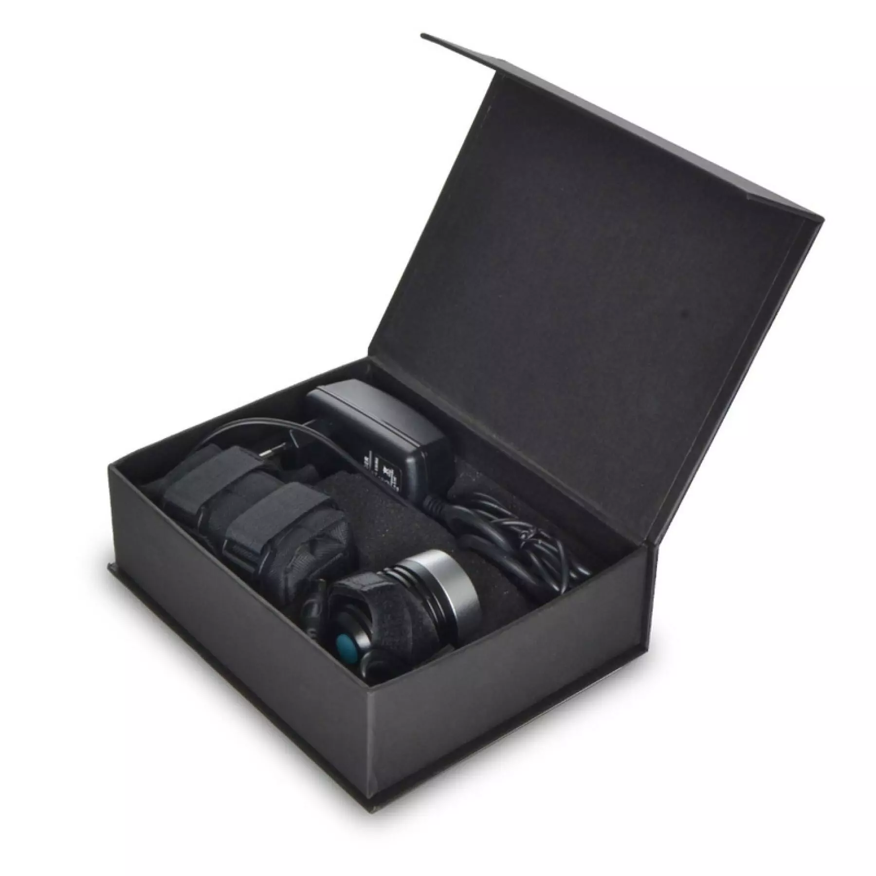 Phare LED haute puissance pour vélo.- Haute puissance : 1000Lm – 1 Super LED extra blanche CREE XML-T60 – 3 Fonctions : Faisceau de route (1000 lm), court et flash – Utilisation de la capacité de la batterie en fonction du temps : 4 heures – Ultra compact. Taille : Longueur 53mm, objectif Ø40mm – Comprend la batterie, le chargeur, les câbles, les attaches velcro pour la batterie, 2 anneaux de retenue en caoutchouc super résistant pour le corps lumineux.